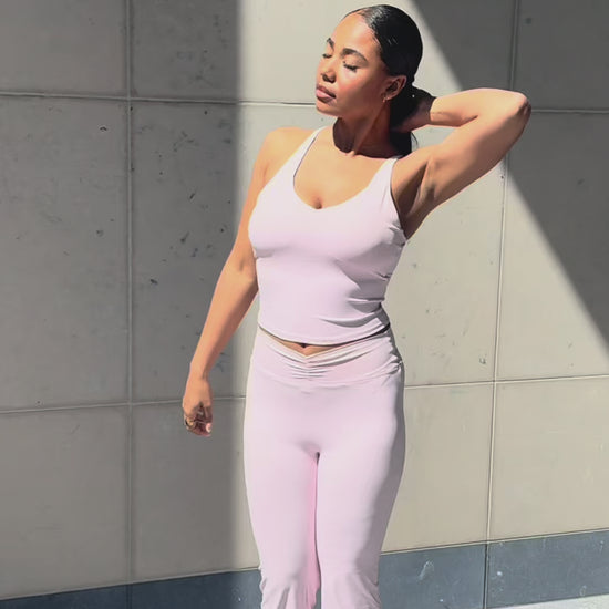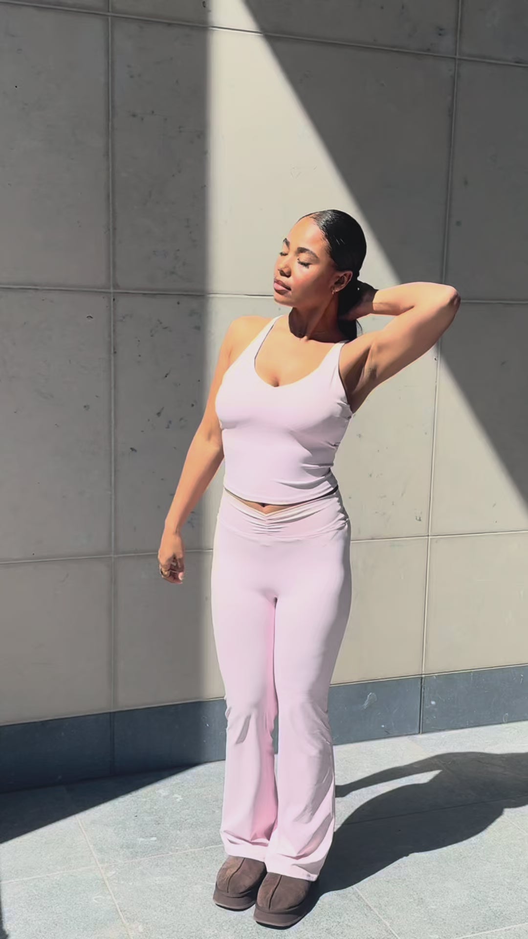 LL The fabric is so soft, and the design is gorgeous. The top fits perfectly with the crossed-back style, and the pants are super comfortable. Feels amazing for every workout!